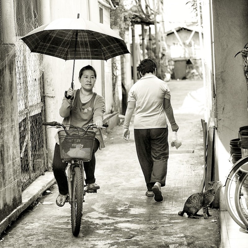 Thanks for the kind words. There are many street photography conventional practices out there, depending on which group you are in. There are the conservative ones, staying strictly with 50mm or 35mm field of view, and long focal lengths are frowned upon. Also, they disallow any interaction with the scene, leaving it completely untouched and candid. I break these rules, obviously!