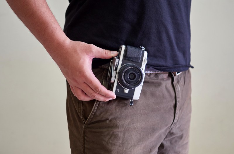 I too used one for several weeks for the compact (GX85) body. Whilst it works great with small and light bodies, fitting and removing the camera is a bit fiddly and care is recommended to ensure the screw is actually engaged and the camera is not at risk of dropping out. It can also be uncomfortable with heavier cameras as the system is all metal and hard edged; I tried it very briefly with an X1D but nearly landed up losing my pants and mooning the people of Tokyo in the process – smaller cameras (or compacts even) work much better. The hardware itself is solid and certainly seems more than durable enough to take some abuse, but care is still recommended to avoid scratching your cameras against the exposed metal surfaces.