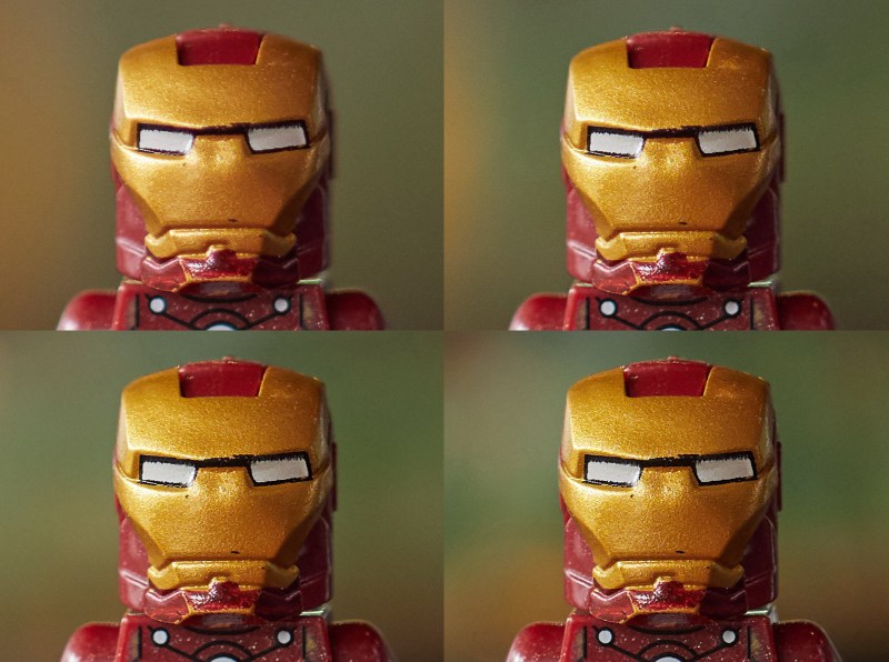 100% crops of F1.2 (top left), F1.8 (top right), F2.8 (bottom left) and F5.6 (bottom right) comparison. You may see the original non-cropped photographs, and the differing bokeh profiles based on the changing apertures on the full gallery here.
