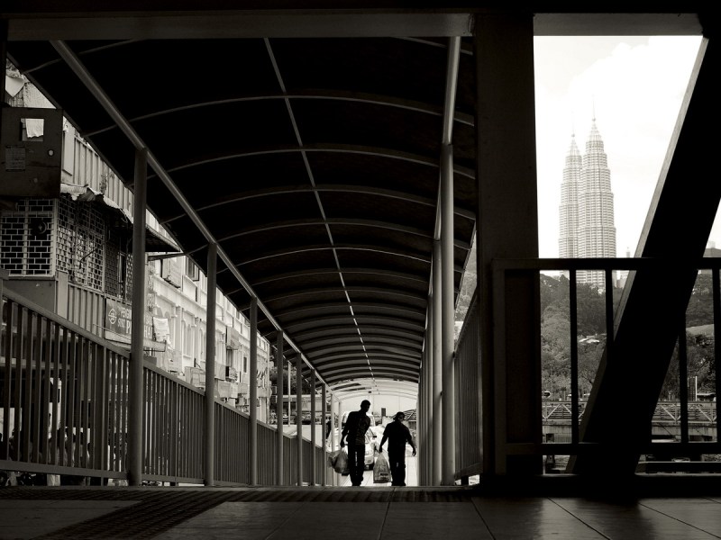 1. Lower your camera as a lower perspective can create dramatic images. Low angle shots work well in several situations, and I employ this often in my street photography. We often shoot through the viewfinder of the camera which, being at our eye level, produces very natural looking, realistic images. Every one sees the world that way, and it can appear too ordinary and plain. By forcing the perspective away from the eye level, and lowering it to the waist level or even lower, the composition can be a lot more dramatic. This won’t work all the time, but why not give it a try and see how it can change the look and feel of your image? This is also where cameras with tilt screens, or swivel screens come in handy. If you don’t have one, just lie down on the floor and get dirty! A little dirt is easier than spending thousands of dollars on upgrading gear. In the above image, by lowering the camera to the ground, I could include the KLCC Twin Towers in the frame, creating a more compelling image.
