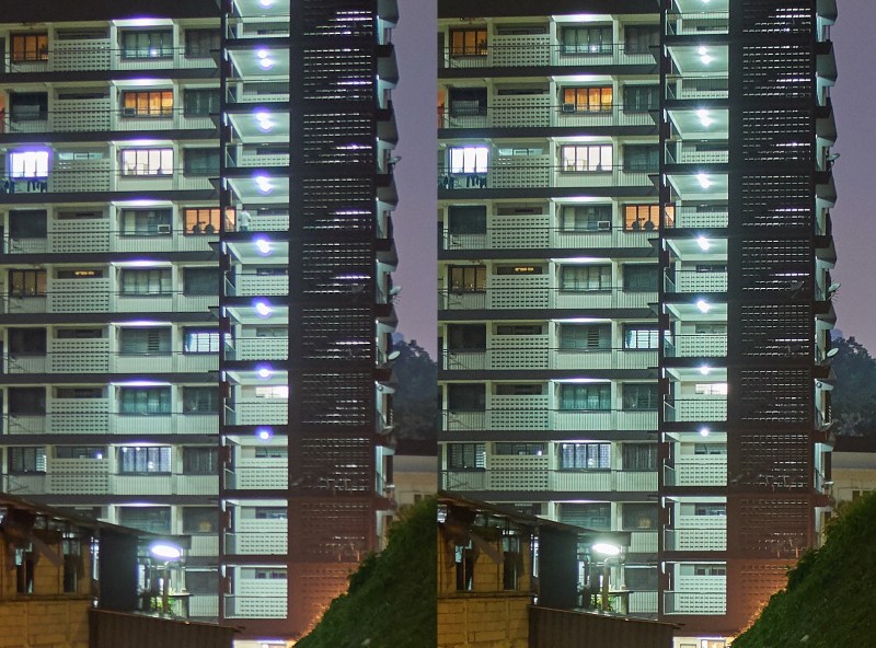 As I inspected the images from this short session at night, I found the wide open images to be uncomfortably soft. They were not unusably soft, just not as sharp as I was expecting. I then decided to do a side by side comparison by stopping down the images to F2.8 to see the difference. As shown in the center crop of a building image above, the F2.8 crop displays significantly more detail, contrast and higher clarity than F1.4. Bear in mind that the F1.4 image was shot at 1/5sec shutter speed, while the F2.8 image was taken at 1 second shutter speed, both hand-held. Since there was a chance that the image stabilization was not optimized for the Sigma lens (after all, it is a third party lens), I conducted a more thorough test on sharpness at different aperture values in a daylight situation.