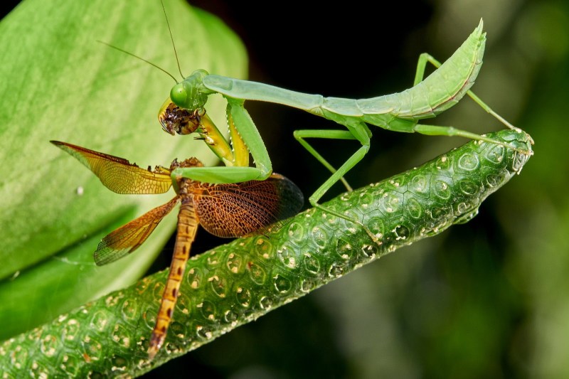 I am going to end with my favourite shot of the day below. As much as we can prepare for a shot, sometimes it all comes down to being at the right time and place. Luck is something we cannot control, but is undoubtedly crucial. In this case, this was a rare moment when I encountered a praying mantis ripping the head off a dragonfly and devouring it. Quite a brutal scene, but this beats any other typical insect “portrait”. Even though the head of the mantis is looking away.