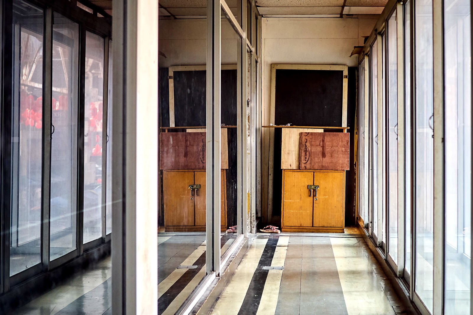 For this series, I used the Olympus PEN E-P5 over two visits. I used the M.Zuiko 25mm F1.8 lens and 17mm F1.8 lens for each visit. There’s minimal post-processing on the images and I retained the original color profile to maintain the mood. The blend of nostalgia from the fading posters, unflattering fluorescent lights and unkept old ceilings create a unique mood to the images. I had to patiently wait for human subjects to enter my frame, adding juxtaposition to a location seemingly devoid of people.