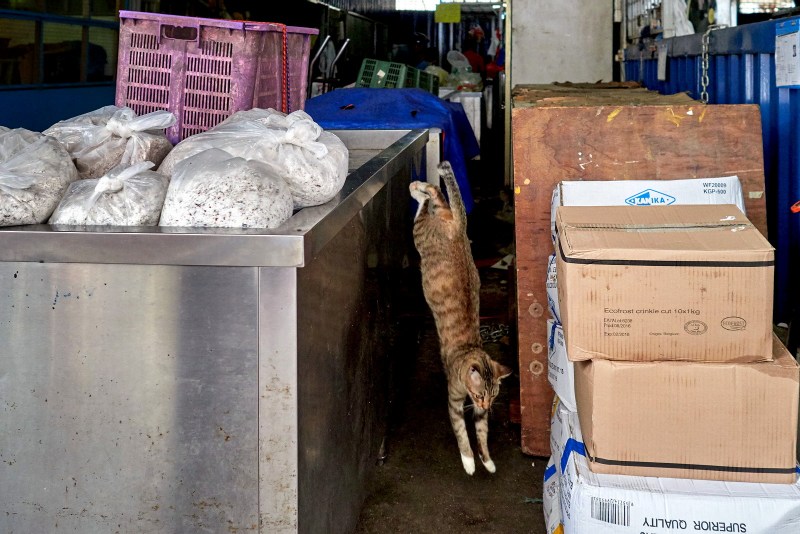 I generally work with wider focal lengths for wet market shooting. My usual lenses are either Olympus M.Zuiko 17mm F1.8 or 25mm F1.8, providing just enough coverage without being too wide to include unnecessary and unwanted clutters in the framing. I do sometimes use the Olympus M.Zuiko 45mm F1.8 but that is specifically for close up portraits only. Wider lenses are favored here for environmental portraits, being more inclusive of the wet market surrounding to support the main portrait. Working with a wide lens like 17mm also means the images are susceptible to unwanted perspective distortion. In order to prevent that, I normally would center my human subjects and not go too close to maintain a natural proportions (head not looking larger than the body, no elongated hands, etc). I admit sometimes perspective exaggeration may create interesting effects but I personally prefer a more natural looking outcome.