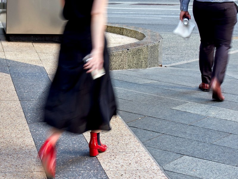 Thanks! The red shoes was unplanned, I saw the lady when she was too near me, so I could only shoot her after she has passed me by. Hence the shot from behind which I seldom did, but I thought why not, since I did not see that many red shoes in the city!