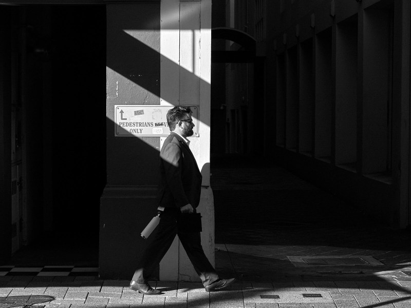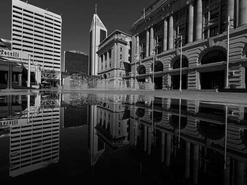 Perth makes for a marvellous backdrop for monochromatic street photography thanks to constantly clear skies, deep shadows cast by direct sunlight and the urban architecture filled with people going about their day. Due to limited time, I didn’t dedicate any shooting sessions to black and white work but shot everything in color and converted some of the shots in post. However, most of the images shown here were shot with the intention of being presented in black and white.